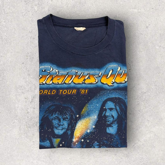Vintage 80s USA Status Quo World Tour 1981 concert graphic band t-shirt