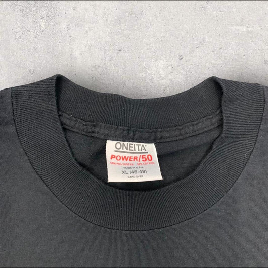When it comes to vintage American clothing, vintage graphic tees were union-made in the 70s, 80s and most of the 90s. It was only during the mid-1990s that companies began to outsource their production to other countries, for cheaper labour costs. So if the tag says "made in the USA" or "made in Canada" it's most likely from this era.