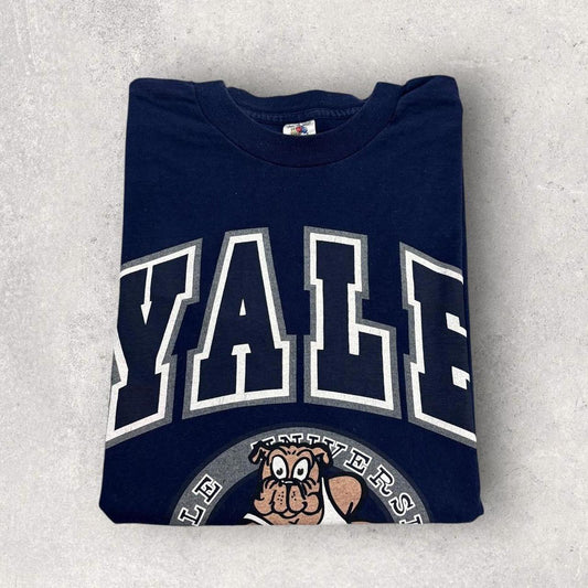 Vintage 90s USA Yale university NCAA basketball bulldog mascot varsity t-shirt