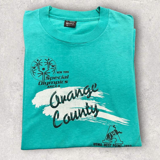 Vintage 90s USA special Olympics orange county california graphic t-shirt