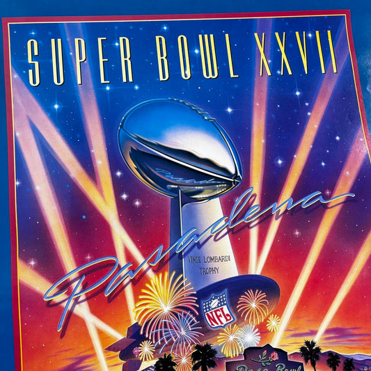 Vintage 90s Super Bowl 27 poster NFL American Football Pasadena Rose Bowl print