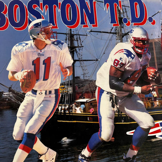 Vintage 90s New England Patriots poster NFL American Football Boston touchdown party print