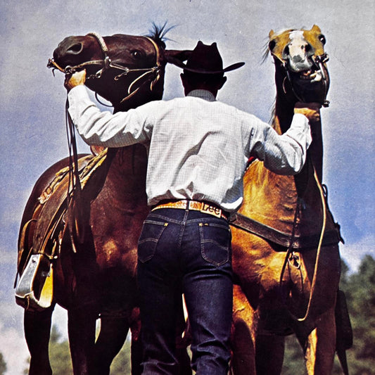 Vintage 80s Lee Jeans poster denim western rodeo cowboy print