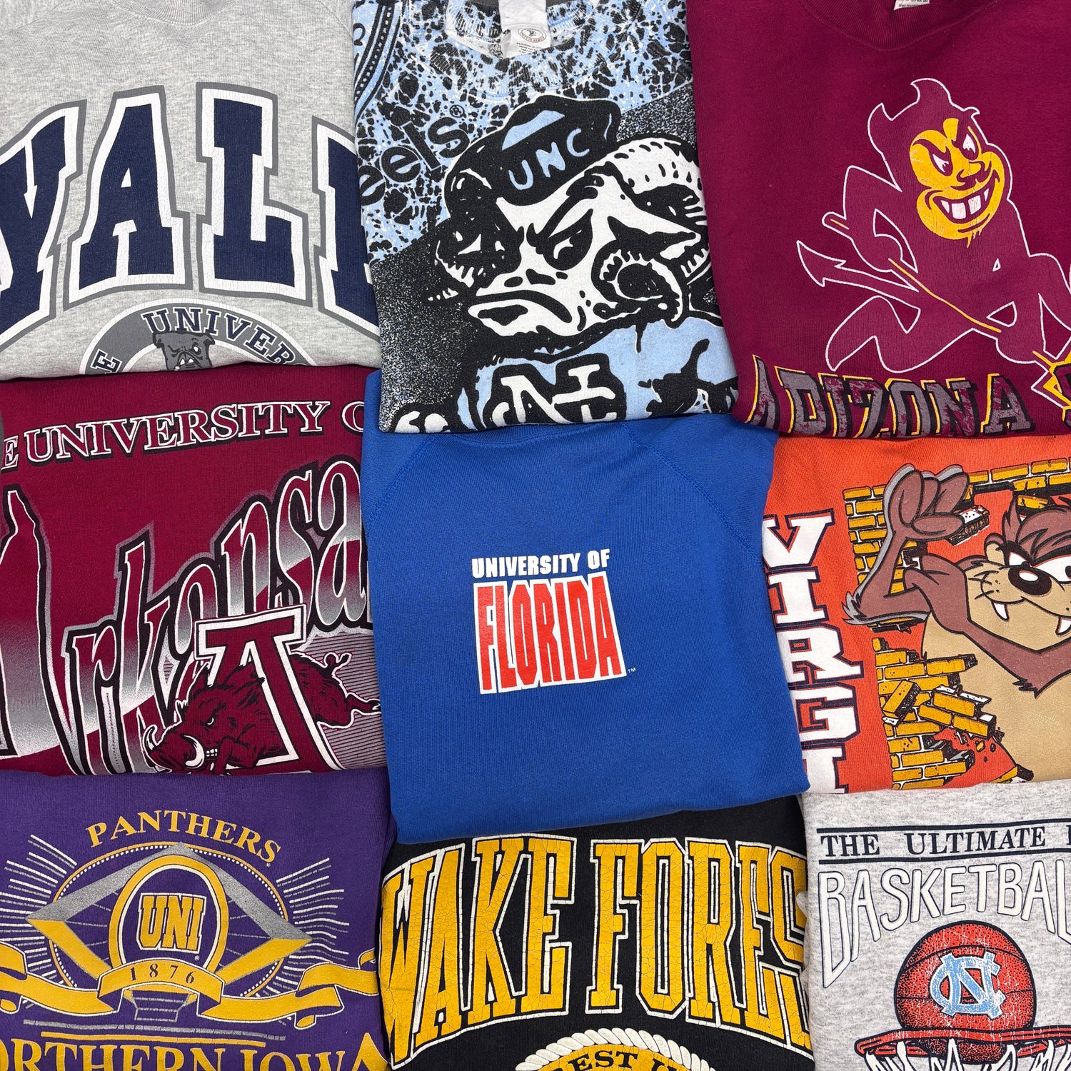 Our vintage sweatshirts typically range anywhere from the 1970s up until the mid-2000s. We aim to stock an eclectic mixture of vintage sweatshirts, ranging from leading brands such as Adidas, Nike and Disney to more eclectic and rare pieces.