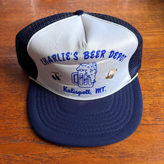 Vintage 90s USA Charlie’s beer depot Kalispell Montana graphic trucker cap