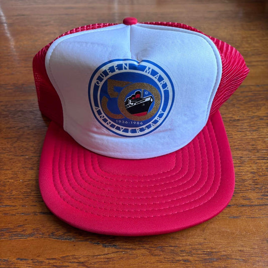 Vintage 80s USA Queen Mary cruise ship 50th anniversary souvenir graphic trucker cap