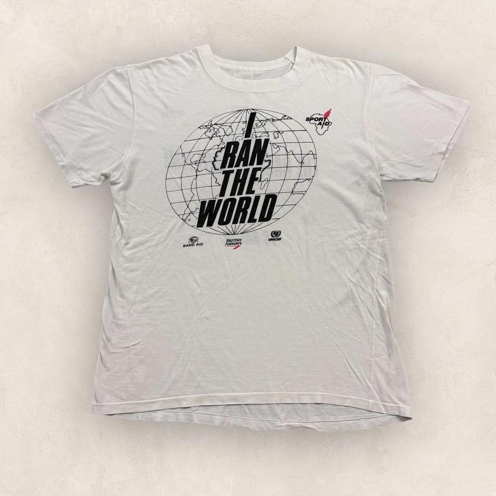 Vintage 80s USA Sport Aid I ran the World charity fundraiser graphic t-shirt