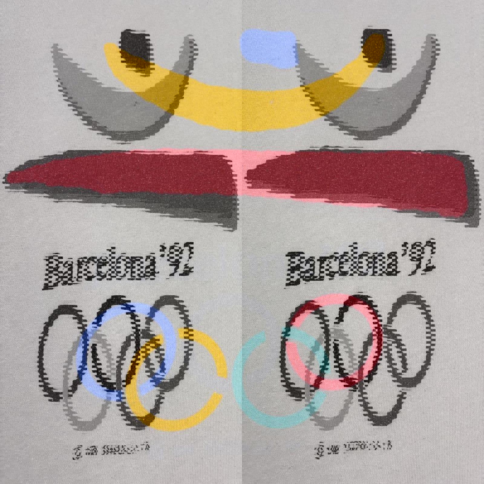 90s graphic tee, Olympic logo, summer sportswear, vintage athletics, Spain souvenir, retro athletic shirt, Olympic games, memorabilia tee, athletic graphic, Olympic mascot