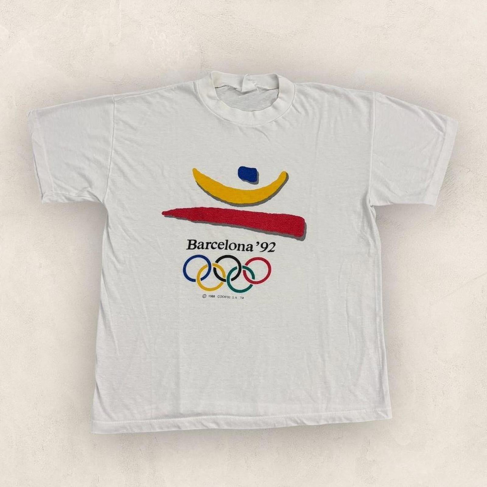 Vintage 90s Barcelona Olympics 1992 summer games athletics Spain graphic t-shirt