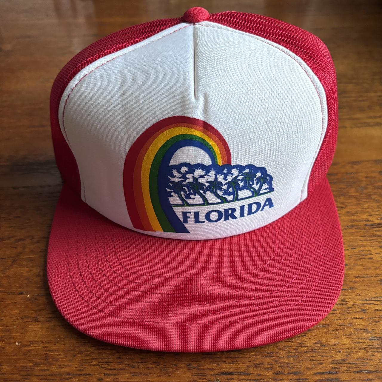 Vintage 90s USA Florida rainbow tourist souvenir graphic trucker cap