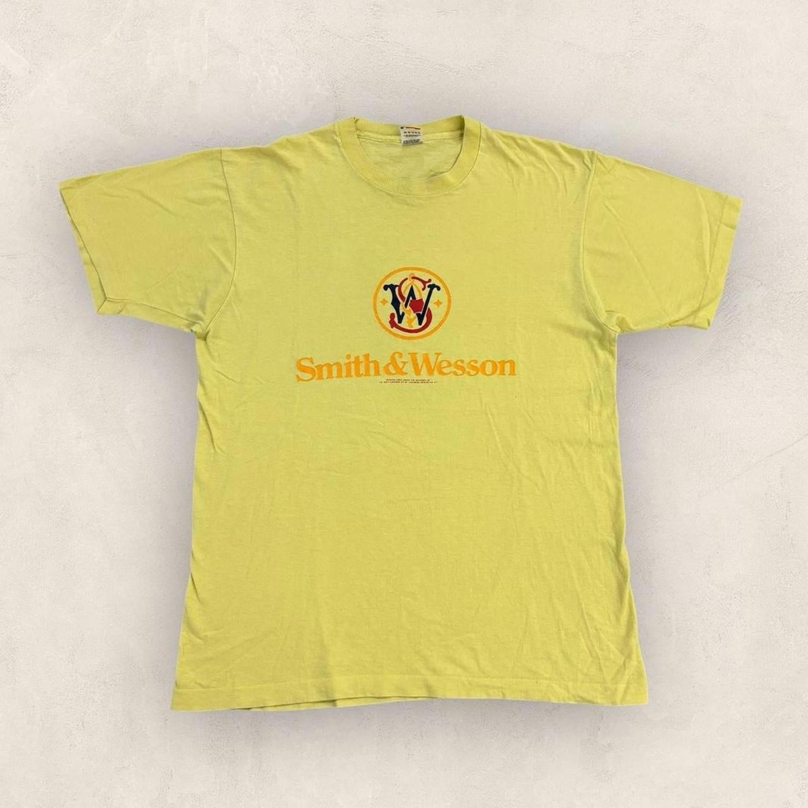 Vintage 90s USA Smith and Wesson firearm manufacturer graphic t-shirt