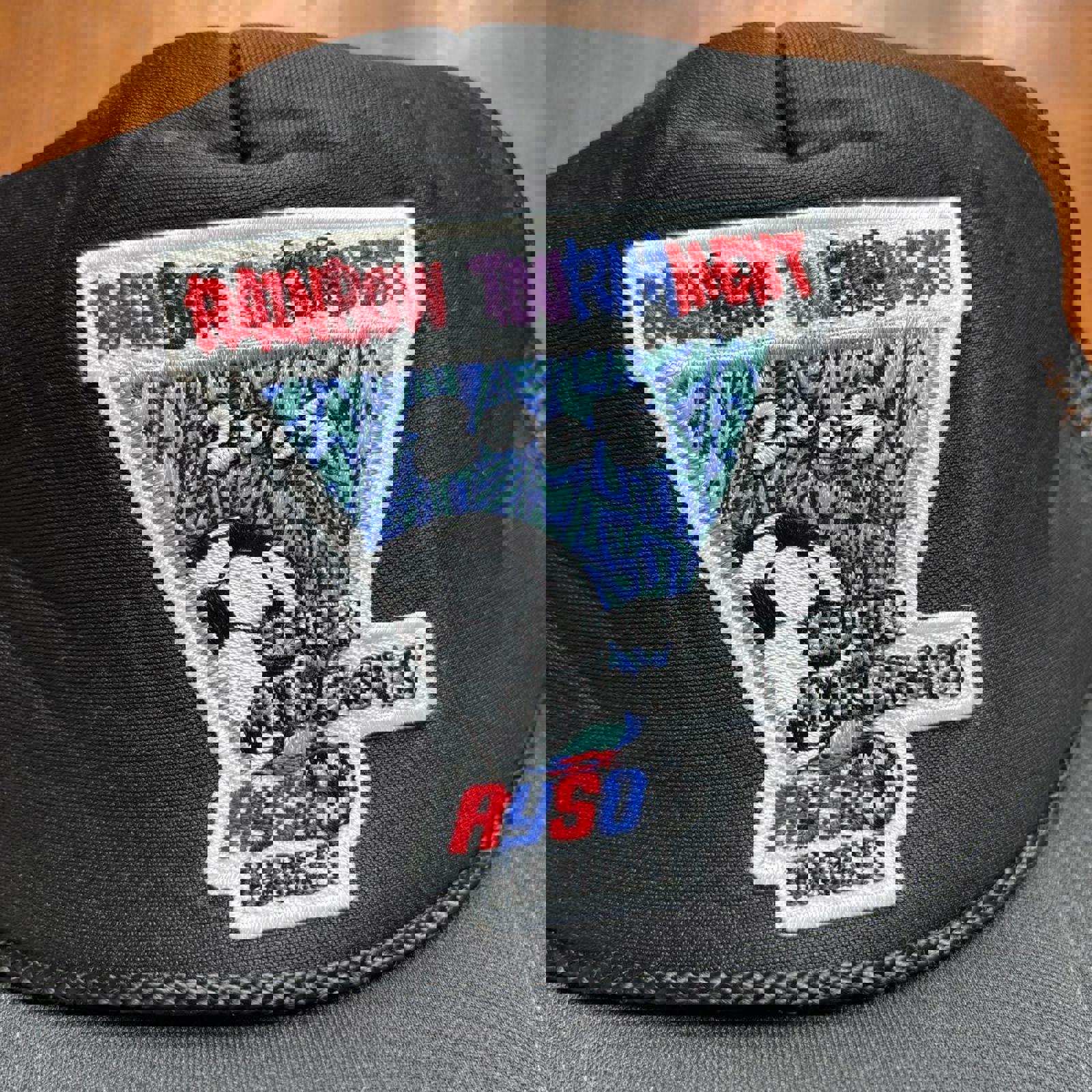 Vintage Y2K rainbow football tournament Hawaii graphic trucker cap